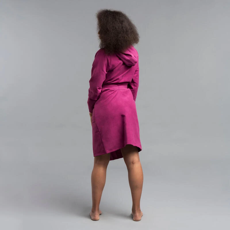 Conçu pour toutes les pratiquantes d’activités aquatiques.Ce peignoir de bain microfibre avec capuche, poches et ceinture est idéal pour la pratique de la natation, du water polo ou de l’aquagym. Ultra léger, il sèche rapidement et se stocke très facilement.
