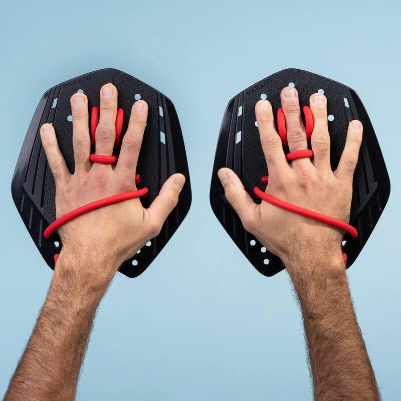 Les plaquettes sont un matĂ©riel de natation permettant le travail du haut du corps (bras, Ă©paules, pectoraux, dorsaux). Elles se positionnent sur les mains pour augmenter la traction et la vitesse dans l’eau. Elles permettent de mieux ressentir la prise d’appui.